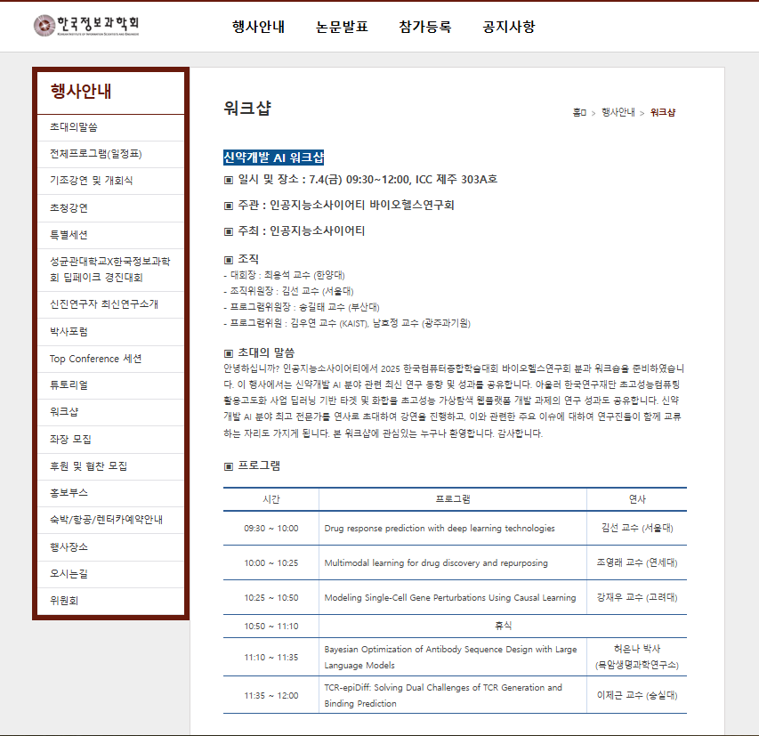 - Multimodal Learning for Drug Discovery and Repurposing (Drug Discovery AI Workshop at KCC 2025, Jeju, 2025)